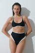 • Recorte contrastante delineando o corpo.