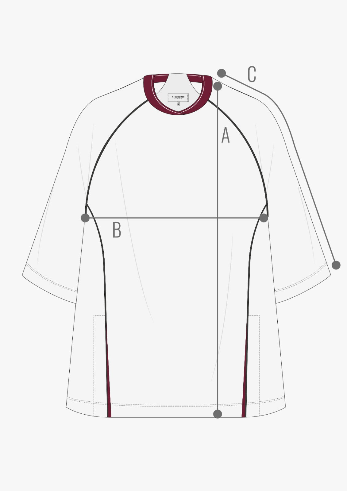 Comprimento (A) |Tórax (B) | Manga (C)